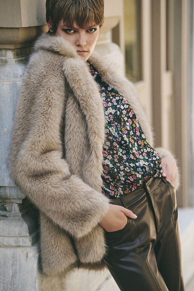 Κοντή συνθετική γούνα, μακρυμάνικη, με γιακά, κλείσιμο με κόπιτσες, κανονική εφαρμογή