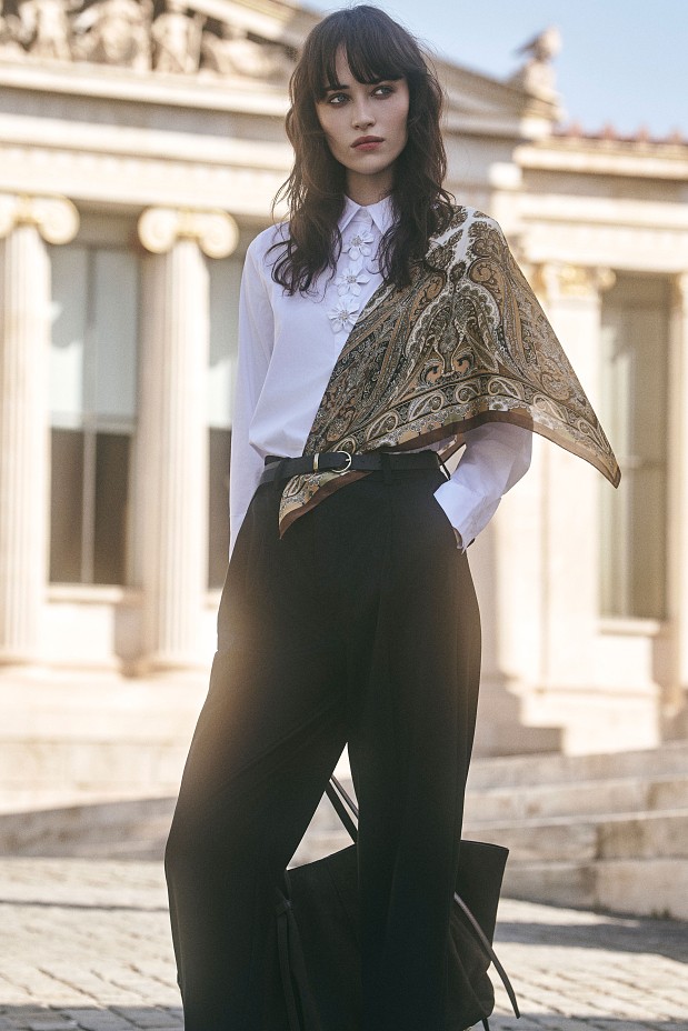 Το μοντέλο φοράει μέγεθος 40. Διαστάσεις του μοντέλου σε cm: Ύψος 179, Στήθος 81, Μέση 61, Γοφοί 89.