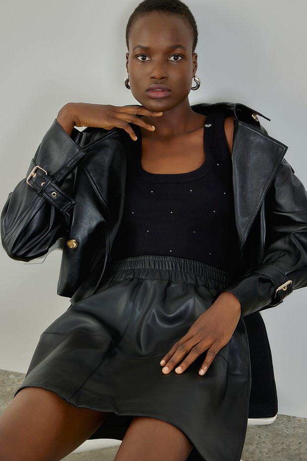 Βασικό αμάνικο rib τοπ με στρας