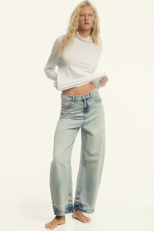 Dione balloon τζιν, κλείσιμο με κουμπί και φερμουάρ, με τσέπες, ψηλόμεσο, βαμβακερό