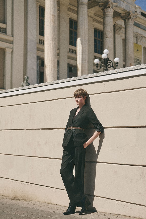Το μοντέλο φοράει μέγεθος 40. Διαστάσεις του μοντέλου σε cm: Ύψος 176, Στήθος 83, Μέση 62, Γοφοί 91.