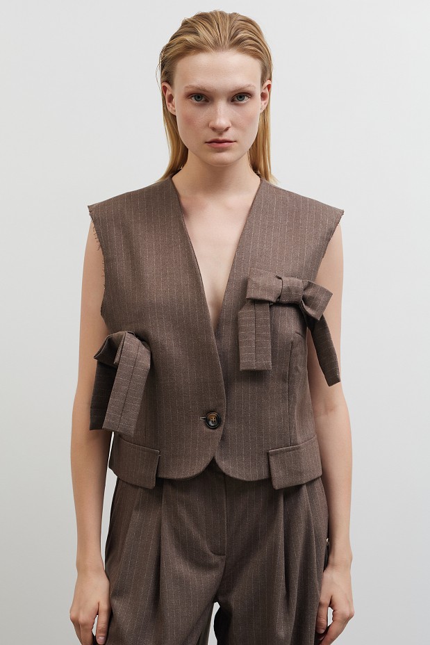 Striped vest with applique bows., sleeveless, front button closure, regular fit