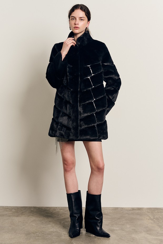 Longline faux fur, with long sleeves, with collar, regular fit, soft texture