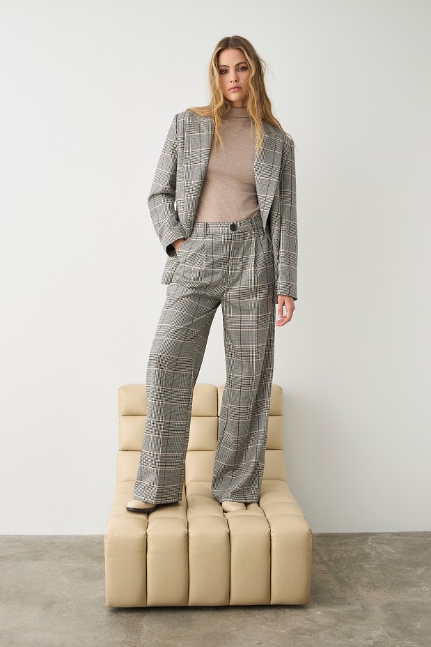 Plaid trouers with pleats