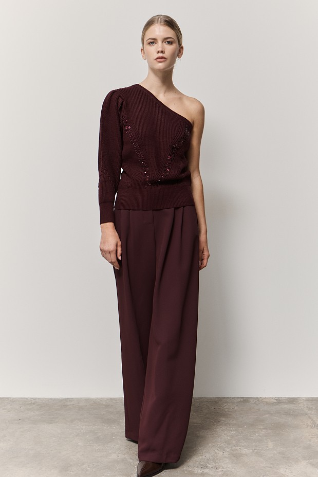 Sweater with one shoulder, with long sleeve, with studs, knitted, regular fit
