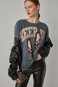 T-shirt with print and rhinestones