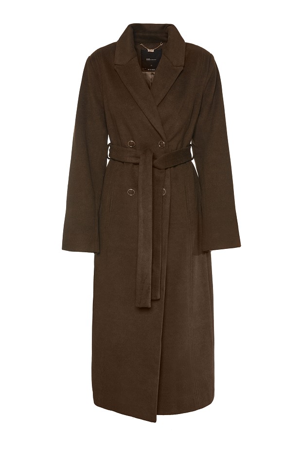 Palton lung, cu guler rever, închidere cu nasturi, cu cordon asortat, cu buzunare, croială clasică, material fin la atingere